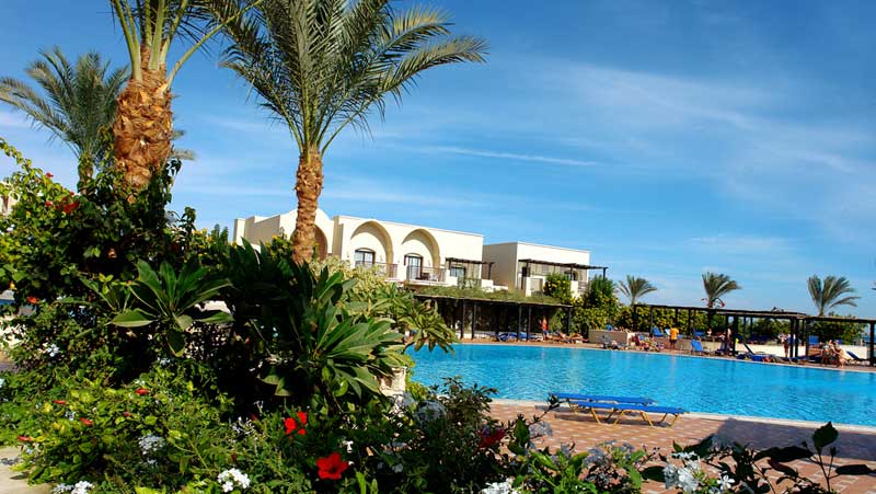 Položaj: na vlastitoj pješčanoj plaži s koraljnim grebenom do kojeg je potrebno hodati po plitkom moru (ronjenje na dah na koraljnom grebenu ovisi o plimi), 10 km od zračne luke i 20 km do Naama Bay-a.