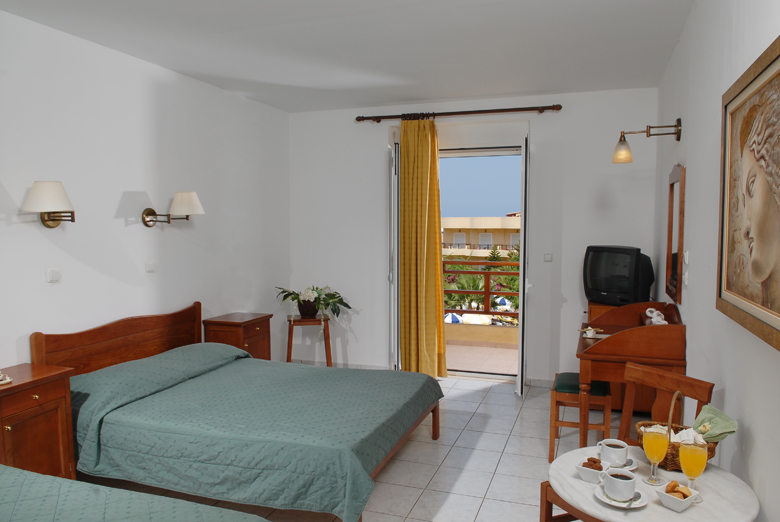 Jednostavan hotelski kompleks s 345 soba, izgrađen u tradicionalnom grčkom stilu, u više različitih zgrada, koje su različito udaljene od mora. Od plaže ga dijeli lokalna cesta, a u neposrednoj blizini hotela nalaze se brojni restorani, barovi i taverne.