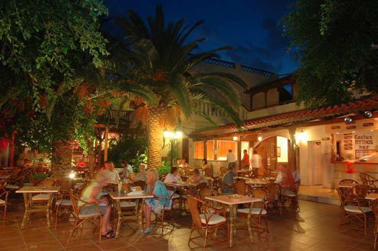 Hrana: švedski stol za doručak (07.00-10.00), ručak (13.00-14.30) i večeru (18.30-21.00) u glavnom restoranu. Mali zalogaji u baru na bazenu te snack baru (10.00-18.00). Lokalna bezalkoholna pića (točena, voda, Cola, Fanta, Sprite, filter kava, čaj) i alkoholna pića (točeno pivo i vino, ouzo, rakija) na raspolaganju su od 11.00 do 23.00 u baru na bazenu. 1x tjedno bez doplate možete večerati umjesto u glavnom restoranu u taverni Paradise na plaži te 1x tjedno u talijanskom restoranu. Ponuda all inclusive ne vrijedi u baru i taverni na plaži.