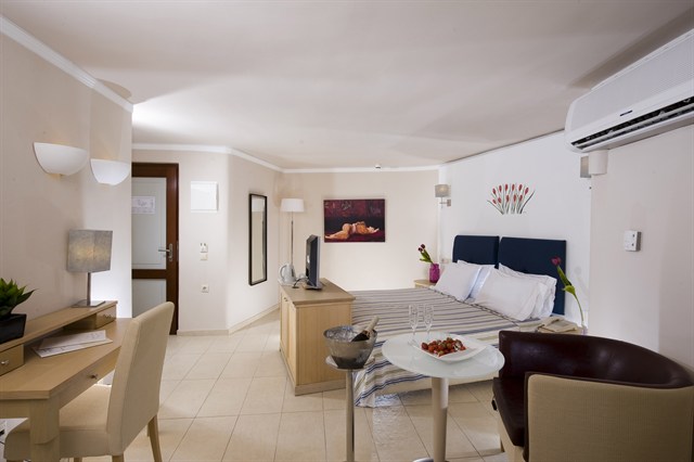 Prehrana: samoposlužni doručak (07.30-10.30), ručak (12.30-14.30) i večera (18.45-21.30) – sve u glavnom restoranu; za vrijeme obroka na raspolaganju lokalna vina, točeno lokalno pivo i bezalkoholna pića.Tijekom boravka možete zamijeniti večeru, koji je u glavnom restoranu, za večeru u: restoranu “Ayeri” – meni “Cretan Delight”, u restoranu na plaži “Kafenion-Ouzeri”– grčki morski meni “Tastes of the Aegean sea” ili u azijskom a la carte restoranu “Sunset” - meni “Asian flair” sa specijalitetima s Dalekog Istoka (potrebna rezervacija, ovisno o raspoloživosti i vremenskim uvjetima). U snack baru “Kafenion” 16.30-17.30 kava, čaj, pecivo; u svim otvorenim barovima na raspolaganju snack i sendviči 10.30-13.00 i 15.30-18.00. Barovi rade: Lobby Garden bar 17.00-00.30, Dadelos bar 10.00-00.30, Aeolos bar 10.00-18.30 – na raspolaganju izbor lokalnih i međunarodnih alkoholnih i brezalkoholnih pića.