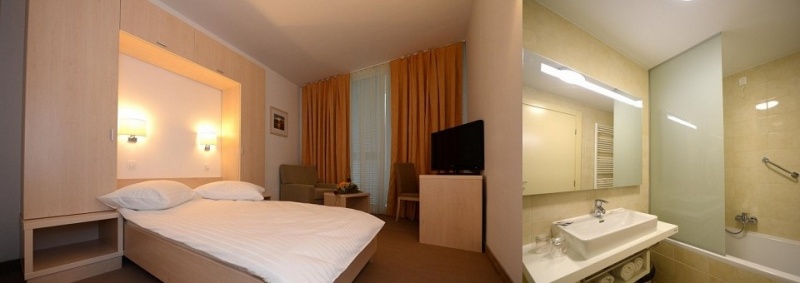 Hotel ima 140 soba, centralna klima, SAT/TV, telefon, fen, balkon. Osim višenamjenskog sportskog igrališta, mini goltfa i dječjeg igrališta, hotel ima zatvoreni i veliki vanjski bazen sa slatkom vodom, saunu, fitness, stolni tenis, te salu za sastanke, sa cca 160 sjedećih mjesta.