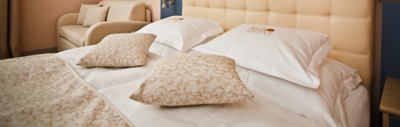 - Soba sa balkonom (25-27m2): tuš/WC, balkon, klima, SAT TV, TEL, pisaći stol, mini bar, sef, sušilo za kosu; djelomično morska strana, djelomično park strana