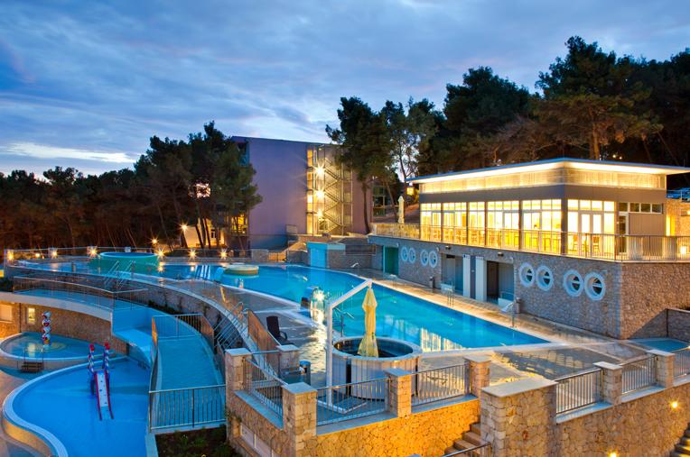 FAMILY ACQUA FUN - - kompleks vanjskih bazena na 3 nivoa kaskadno posloženih prema moru, proteže se na ukupno 3.000 m2. Bazen duljine 37 m i dubine 1,35 m s hidromasažom, vodopadima, protustrujnim plivanjem, jacuzzijem i sunčalištem s pogledom na more. Dva bazena za djecu s toboganom i vodopadom. Recepcija, bar, garderoba. Prilaz prilagođen osobama s posebnim potrebama. Zabavan vodeni svijet namjenjan djeci jedinstvenstvena je ponuda Lošinja.