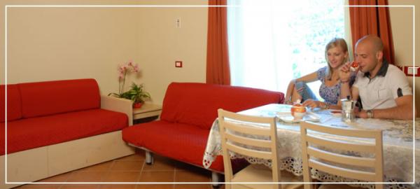 App.4 (dvosobni apartman): spavaća soba s bračnim krevetom, dnevni boravak s kaučem na razvlačenje- francuski ležaj, kupaonica s wc-om. Postoje i manji apartmani s dnevnim boravkom s kaučem na razvlačenje, kutem s krevetima na kat, spavaćom sobom s bračnim krevetom, kupaonicom i wc-om.